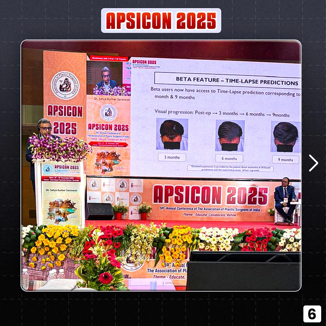 Dr. Satya Saraswat participated in APSICON 2025 held in Varanasi, Uttar Pradesh, India, as a faculty member and presented a paper on Artificial Intelligence (AI) in Hair transplantation.